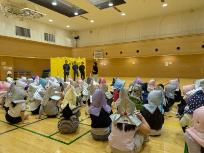 3年生が煙体験をしました。築地消防署の方にお越しいただき貴重なお話も伺いました。