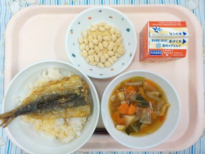 2月3日(火)★季節の献立(節分)★ 2026/02/03 いわしのかば焼き丼、けんちん汁、きなこ豆、牛乳 2月2日(月) 2026/02/02 ごはん、ヘルシーバーグ、フレンチサラダ、みそ汁、牛乳 1月30日(金) 2026/01/30 ごはん、鯨と大豆のマリアナソース、糸寒天サラダ、さつまいもの味噌汁、牛乳