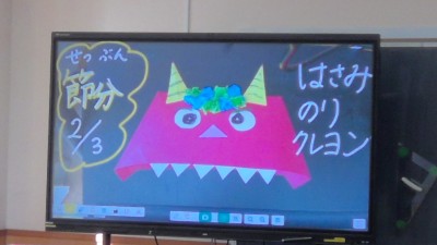 【杉の子学級】2月3日(火) 図工 2026/02/09 2月3日は節分でした。3・4校時、図工の時間に鬼の帽子を作りました。 「どんな色の顔にしようかな」「角は1本... 【1年】2月3日(火) 6年生と昔遊び 2026/02/09 6年生と一緒に昔遊びをしました。凧あげを手伝ってもらったり、こまやけん玉のコツを教えてもらったりしながら一緒に... 2月9日(月) 2026/02/09 ごはん、卵焼き、じゃこサラダ、芋だんご汁、牛乳