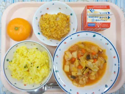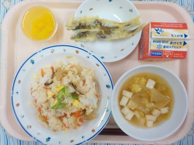 3月3日(火)★季節の献立:行事食(ひな祭り)★ 2026/03/03 ひなちらし、ししゃもの天ぷら、すまし汁、桃ゼリー、牛乳 避難訓練 2026/03/02 今年度、最後となる避難訓練がありました。 予告なしの訓練でしたが、避難の約束を守り、すばやく校庭に避難しまし... 3月2日(月)★リクエスト給食★ 2026/03/02 ターメリックライス、クリスピーチキン、ミネストローネ、みかん、牛乳 校内で一番人気の高かったクリスピーチ...