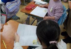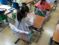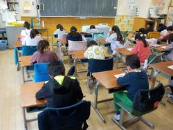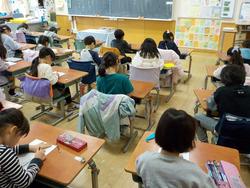 111日に席書会を行いました。お手本をよく見てゆっくり丁寧に書きました。初めての席書会、最後まで集中して取り組むことができました。