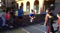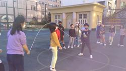 長縄の記録会の様子です。記録前の休み時間には各クラスで声を掛け合い、記録会で最高記録が出せるよう練習を重ねてきました。その