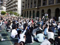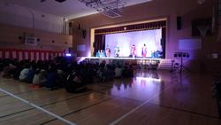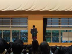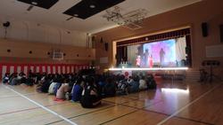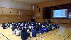 今日は、PTA主催の開校115周年を記念する観劇会が行われました。前日の夜から体育館を使ってリハーサルをしていて、本格的な劇に終始圧倒されていました。なかなか観ることができない貴重な機会を楽しんでいました。劇団の人からは、「明日があるというのは当たり前じゃない」ということを実体験をもとにお話ししていただき、勉強になりました。