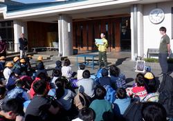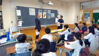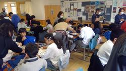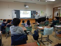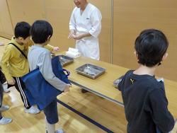 すし作家の岡田大介さんが2年生へ「食の大切さ」についてお話をしてくださりました。お話が終わった後には、実際に生の魚を見たり触ったりでき、子どもたちは大喜びでした。また、給食のときには「食材や、料理を作ってくれている人に感謝しよう」と話しながら、感謝の気持ちをもって給食を食べていました。