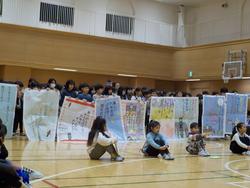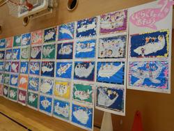 5年生は幼稚園と一緒に展覧会の鑑賞を行いました。幼稚園の子ども達と手をつないで、優しく声をかけながら各学年の作品を紹介していました。