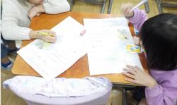 学習の最後には、お話しの続きを自分で考えて書きます。どんなお話しができるのか楽しみです。