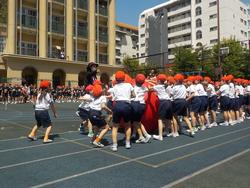 久しぶりに学年をまたいでの競技が復活しました。今年度は1、3、5年生が前半の部で、2、4、6年生が後半の部で紅白に分かれて競い合いました。前半も後半も大盛り上がりで幕を閉じました。