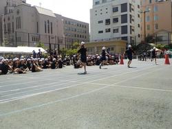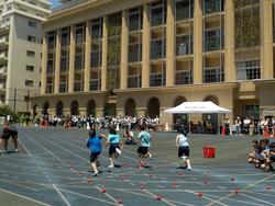 初めての体育学習発表会でした。テンポの速い曲に合わせてリズムよく踊ることができました。リストバンドがきらきら輝いていました。40m走もゴールまで全力で走り抜けました。