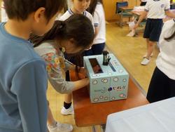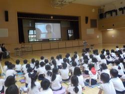 養護教諭の石山先生より「手洗いの大切さ」のお話しをしてもらいました。音楽に合わせて手を洗ったり、しっかり洗えているかチェックしたりしてみると、