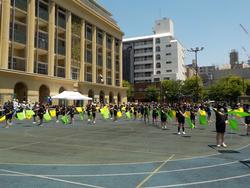 元気いっぱいの4年生100名が1人1本のフラッグを持って演技しました。集団として、息の合った美しい演技を披露することができました。
