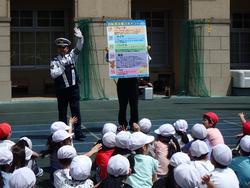 セーフティー教室で自分の身を守る方法を警察の方が来て教えてくれました。「いかのおすし」をよく知ることが出来ました。実際に、断る練習もよく出来ました。