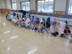 軍手を身につけ、全身を大きく使ってダンスをしました。リズムに合わせて楽しく踊ることができました。