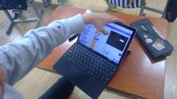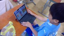 4年生は現在、総合でタブレット使用し、プログラミングを学習しています。キャラクターや背景を自分が好きなものに設定し、動きや音声を加え、オリジナルのショートストーリーを作成しています。