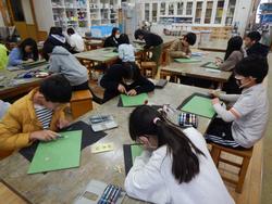 4年生の図工では、彫刻刀を初めて使い版画作りに取り組んでいます。彫刻刀の種類ごとの特徴を生かして、刷ったかんじを想像しながら一生懸命に彫っていました。大きな怪我なく彫り終え、今週から印刷です。上手に刷れて歓声があがっています。5年生になったらカラーのインクでグラデーション版画に挑戦したいと意欲的な4年生です。