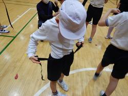 1月17日()の1時間目は体育で、体育館でオセロゲームやしっぽとりをしました。しっぽとりのベルトを着ける際に高学年児童が低学年児童を手助けする姿が見られ、全学年合同で体育を行う杉の子学級のよさが感じられました。