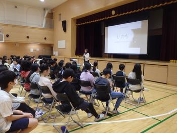 いのちの授業公認講師の鈴木みお先生に来ていただき、命の大切さや自分のことを大切に思ってくれている人が周りにいることについて講演していただきました。児童にとっては赤ちゃんが産まれてくるまでの大変さや、命というものがとても大切なものなんだと再確認できたよい機会となりました。授業後には何人かの児童が素晴らしい感想も述べてくれました。