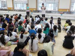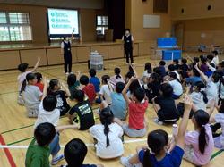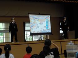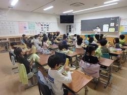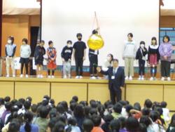 代表委員会の児童が中心になって全校朝会(開校記念集会)を行いました。明石小の歴史について、児童が劇やクイズを通して楽しく紹介してくれました。その後は、記念のくす玉を割ったり、記念の歌を合唱したりしました。紅白まんじゅうが配られたり、お赤飯の給食が出たりして、お祝い気分の一日となりました。明石小の歴史を作ってくれた先輩方に感謝をして過ごしましょう。