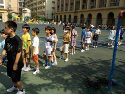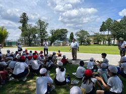 11月8日に全校で避難訓練を行いました。一次避難として校庭に集まり、その後二次避難としてあかつき公園までの道順を実際に歩いて確認しました。