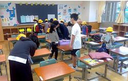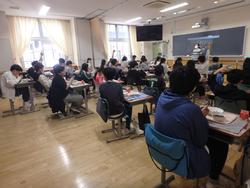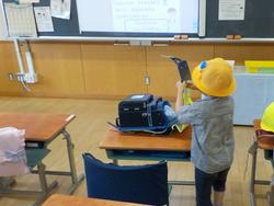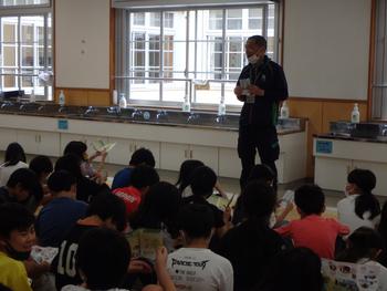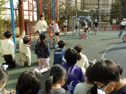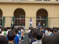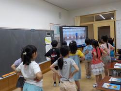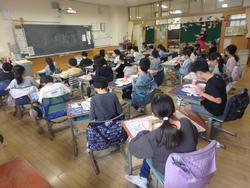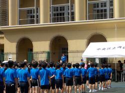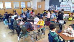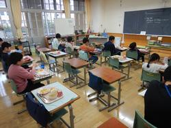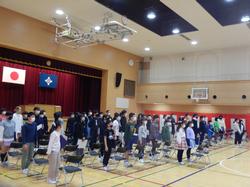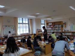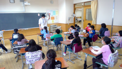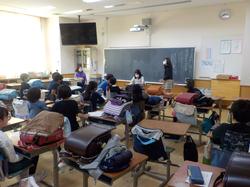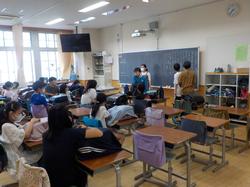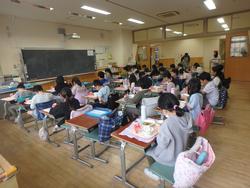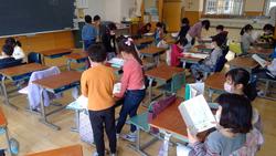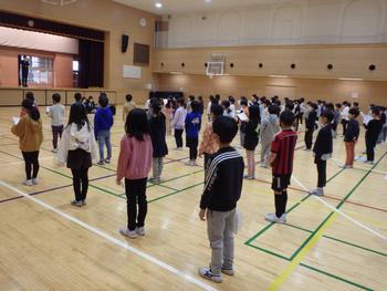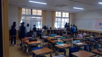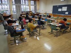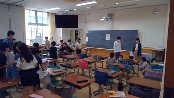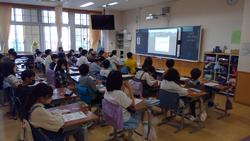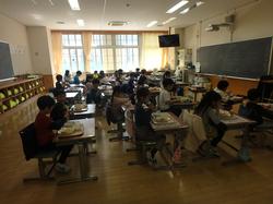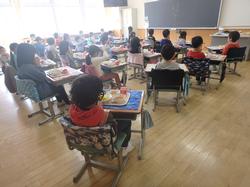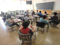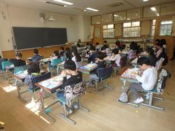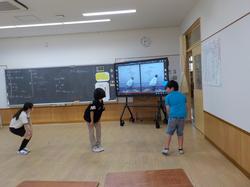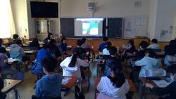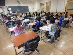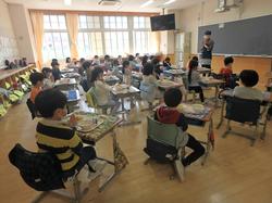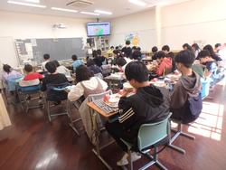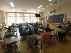 5,6年生は校庭で、他の学年は教室で参加しました。