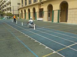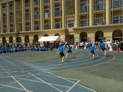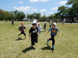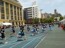 小学校初めての発表会、旗を大きく振り、1つ1つの動きに集中して踊ることができました。40m走もゴールまで全力で駆け抜けました。