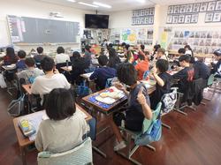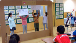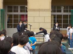 沖縄県の伝統芸能「エイサー」を披露しました。「笑顔・一生懸命・友達とサポートし合う」を合い言葉に練習に励みました。「イーヤサーサ」のかけ声がそろっていて素敵でした。