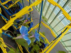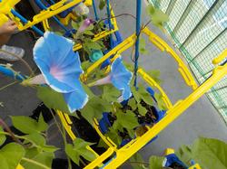 毎日、水やりをして大切に育てています。つるが長く伸びたり、葉が大きくなったり、花が咲いたりしました。