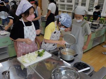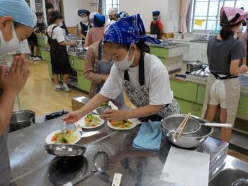 協力して手際よく作業している姿に成長を感じました。調理実習で作った料理は多くの先生方にも試食していただきました。