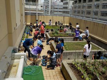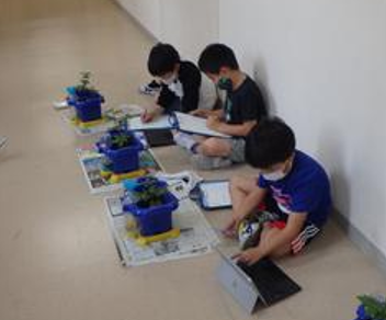 「花の色がきれいだね」と友達同士で声を掛けていました。生き物に親しんだり、季節の自然を感じたりしながら