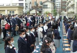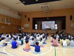 本日の終業式は3・4年生が体育館で、他の学年は教室でmeetにて参加しました。