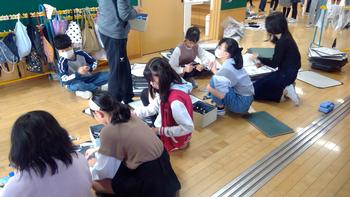 入学式翌日から1年生のお世話当番が始まりました。最初はどう関わればいいか分からず、呆然とたっているだけの児童もいましたが、1週間たち「かわいい」といいながら、たのしんで1年生と関わることができています。